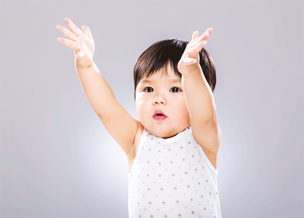 Also at the end of the first year, babies develop a repertoire of symbolic gestures. They gesture to refer to objects (e.g., sniffing to indicate “flower”), to request something (smacking the lips for “food”), to describe objects (raising the arms for “big”), and to reply to questions (opening the palms or shrugging the shoulders for “I don't know”). They clap in response to pictures of things they like. Children whose parents encourage them to use gestures acquire larger vocabularies, have better comprehension, are better listeners, and are less frustrated in their efforts to communicate than children who are not encouraged to use gestures (Goodwyn & Acredolo, 1998). When babies begin to speak, they continue to gesture along with their words, just as adults often gesture when talking. These gestures are not a substitute for language but are deeply related to its development, as well as to the development of thinking and problem solving (Fay et al, 2014; Goldin-Meadow, Cook, & Mitchell, 2009). Parents, in turn, use gesture (pointing, touching, tapping) to capture their babies' attention and teach them the meanings of words (Clark & Estigarribia, 2011).