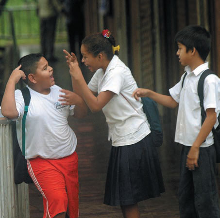 These deaf Nicaraguan children have invented their own grammatically complex sign language, one that is unrelated to Spanish or to any conventional gestural language (Senghas, Kita, & Özyürek, 2004).