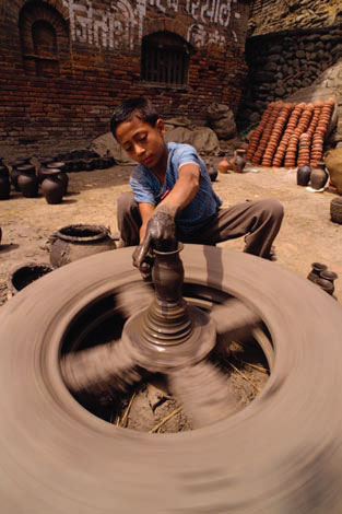 Experience and culture influence cognitive development. Children who work with clay, wood, and other materials, such as this young potter in India, tend to understand the concept of conservation sooner than children who have not had this kind of experience.
