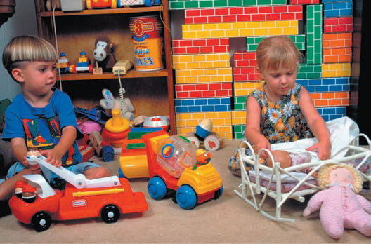 Look familiar? In a scene typical of many homes and nursery schools, the boy likes to play with trucks and the girl with dolls. Whether or not such behavior is biologically based, the gender rigidity of the early years does not inevitably continue into adulthood unless cultural rules reinforce it.