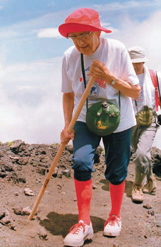 You are never too old for self-actualization. Hulda Crooks, shown here at age 91 climbing Mt. Fuji, took up mountain climbing at age 54. “It’s been a great inspiration for me,” she said. “When I come down from the mountain I feel like I can battle in the valley again.” She died at the age of 101.